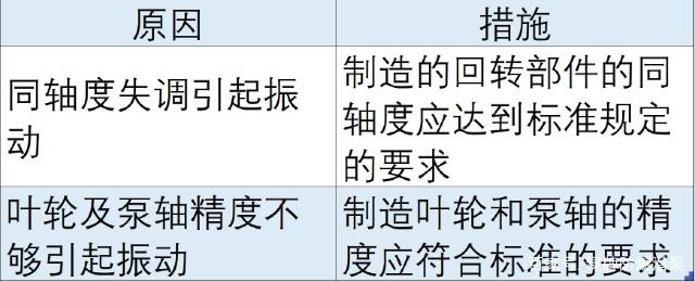 控制措施为:制造叶轮和泵轴的精度应符合标准的要求,泵轴的表面粗糙度(尤其是密封和轴封部位)、轴的热处理质量及叶轮的过流面粗糙度等,都应符合标准,不能存在热裂、气孔、砂眼及其它缺陷。