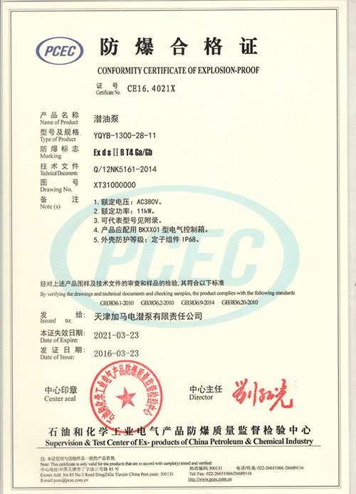 防爆化工潜泵系统所有连接器及线路连接部位均采用上述防爆型式。