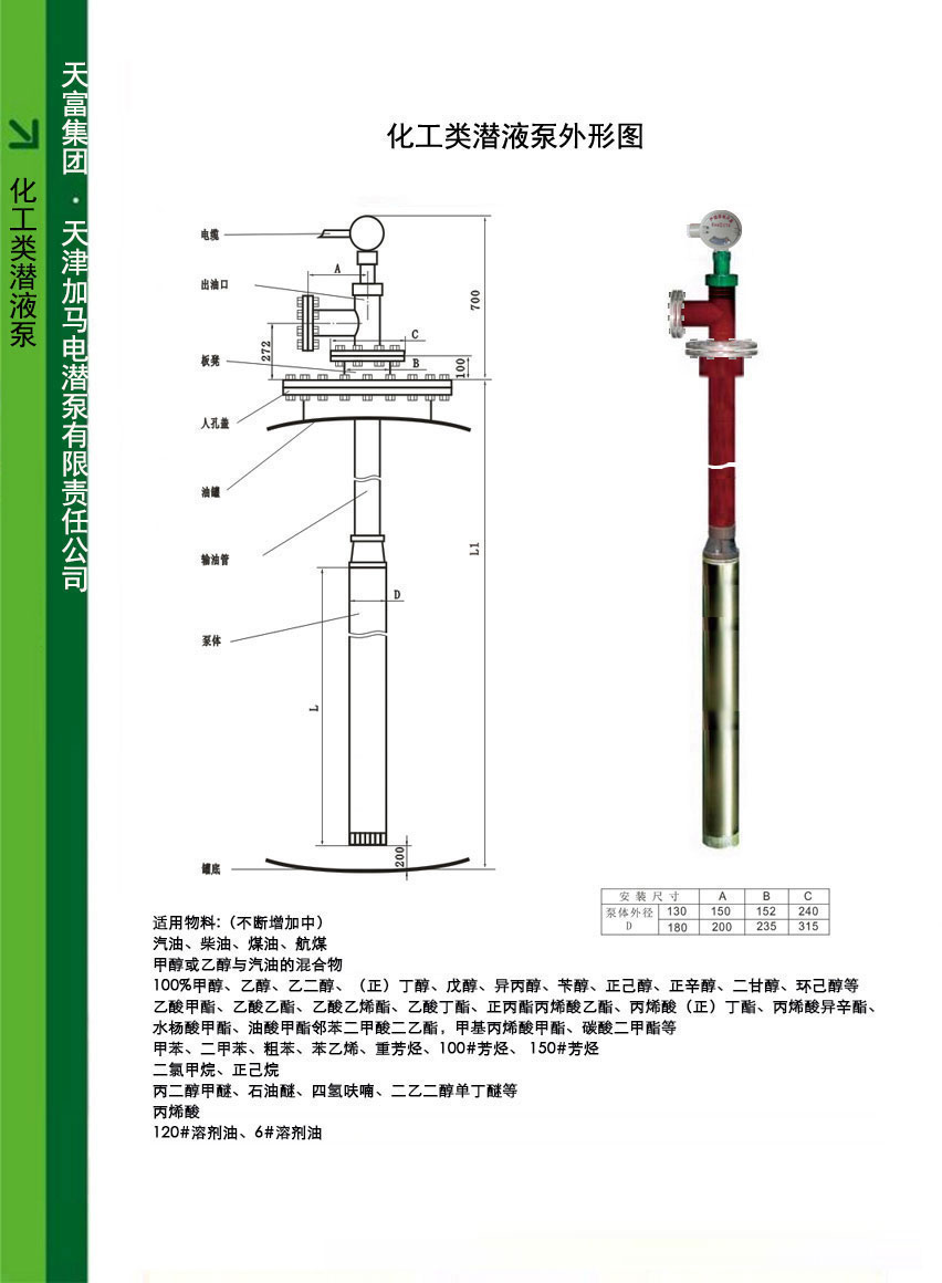 绿牌化工潜液泵从根本上改变了介质的输送方式,由负压自吸式转变为正压式推送式,从而解决了吸程低、高温和高海拔环境下气阻等问题,是诸多进口潜泵所不具备的。