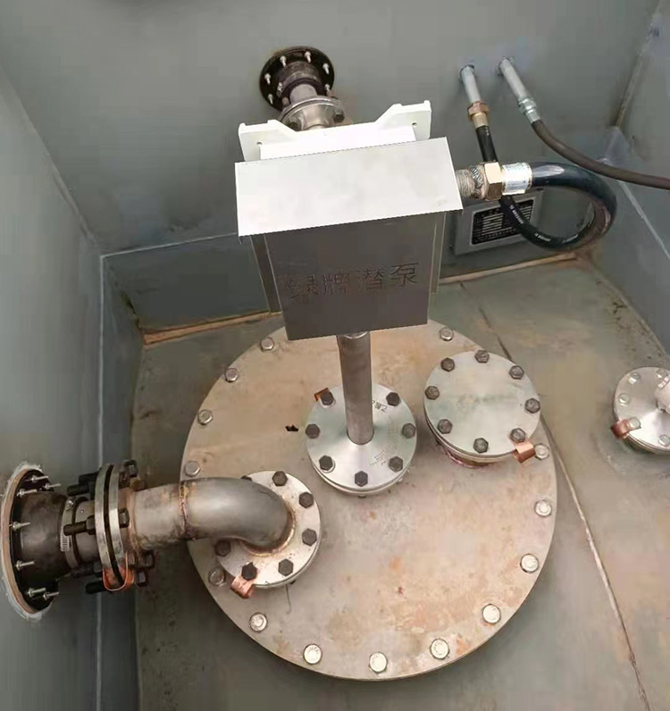 1、用吊车将泵吊起缓慢的放入人孔盖内并调整角度。