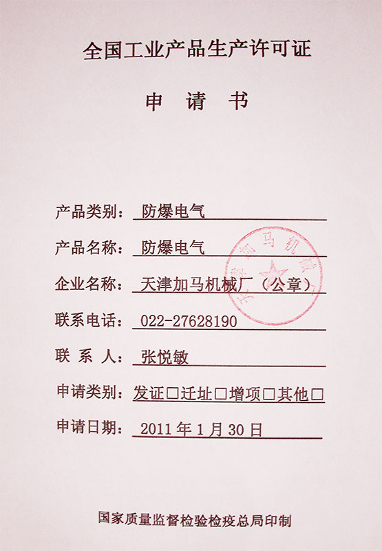 2011年2月至4月期间,我厂对新开发的5个系列近70种规格潜油泵申请生产许可证。期间,国家生产许可证审查部专家张刚副所长等人来厂实地核查,目前申证工作已经完成。